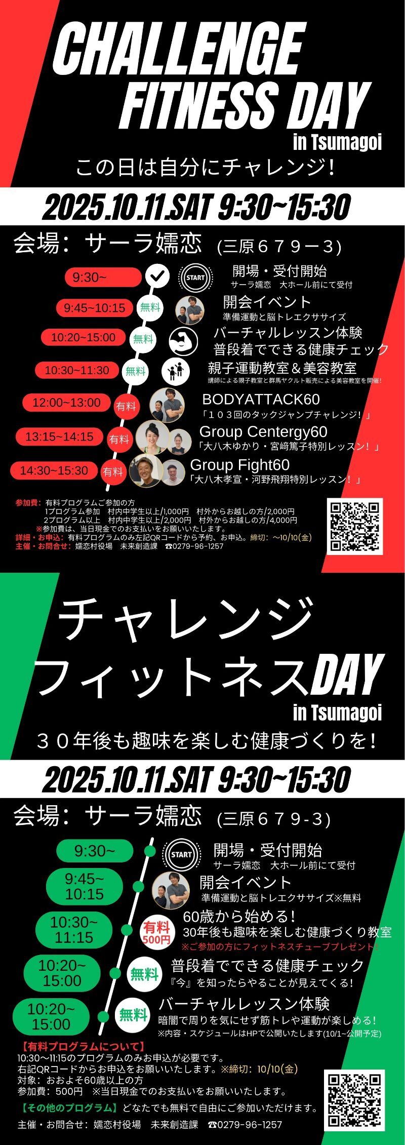 トップ > お知らせ >【チャレンジ フィットネス DAY】in Tsumagoi開催のお知らせ